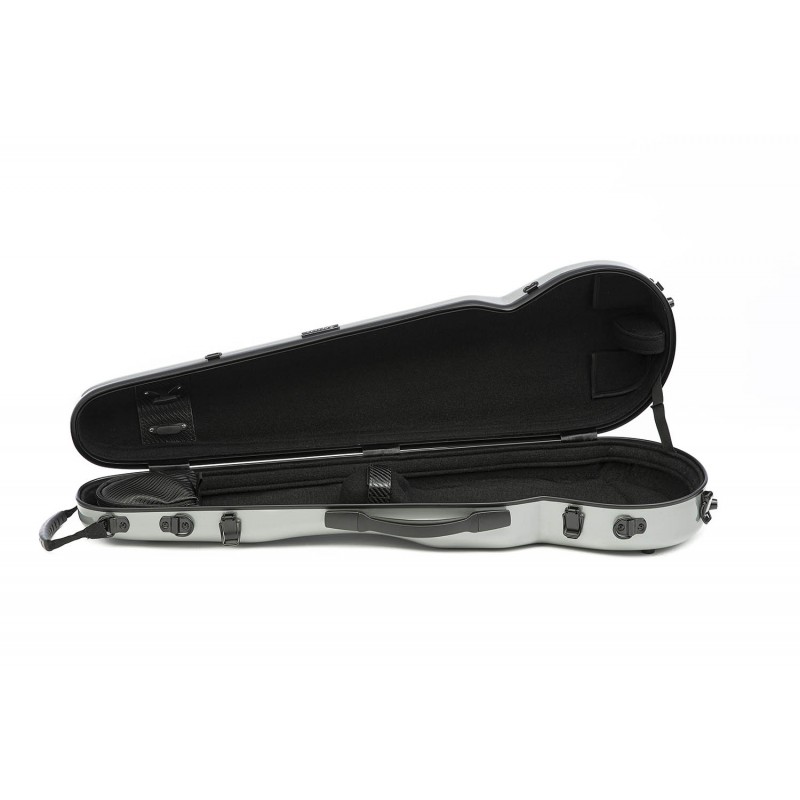 Estojo para violino 4/4. Estojo em compósito. Exterior em policarbonato. Interior em veludo. Asa lateral e mochilas. Espaço para 2 arcos. Compartimento para acessórios. Peso: 1,9kg.