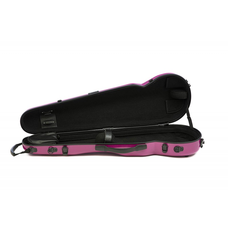 Estojo para violino 4/4. Estojo em compósito. Exterior em policarbonato. Interior em veludo. Asa lateral e mochilas. Espaço para 2 arcos. Compartimento para acessórios. Peso: 1,9kg.