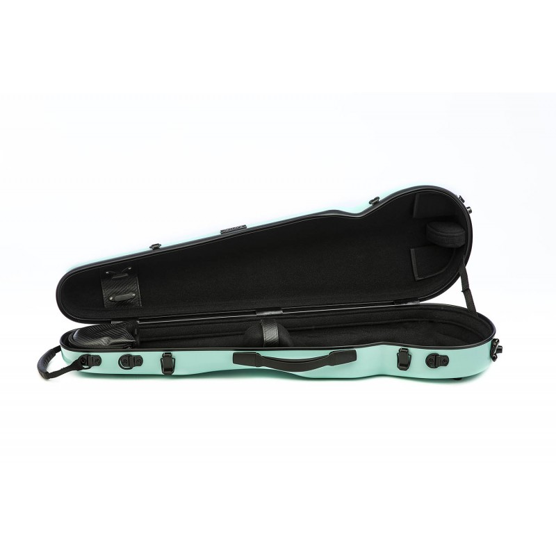 Estojo para violino 4/4. Estojo em compósito. Exterior em policarbonato. Interior em veludo. Asa lateral e mochilas. Espaço para 2 arcos. Compartimento para acessórios. Peso: 1,9kg.