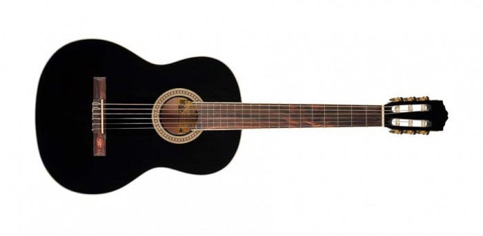 Guitarra clássica espanhola, tampo em cedro, laterais e fundo em Sappelie. Acabamento preto.