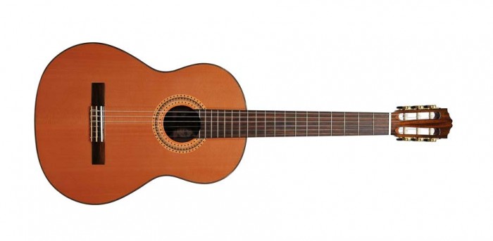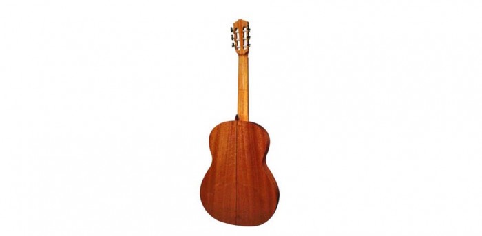 Guitarra clássica espanhola, tampo maciço em cedro, laterais e fundo maciços em Mogmo. Estojo Deluxe.
