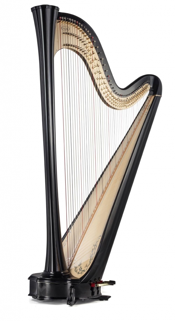 Harpa de pedal de 47 cordas, da série Concert Grand. .SOL 0 oitava a DO 7ª oitava. Altura 187 cm. Largura 100 cm. Caixa harmónica 55 cm. Peso 39.5 Kg.