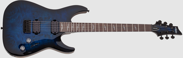 Guitarra elétrica de 6 cordas, stratocaster. Corpo em mogno. Braço em bordo. Escala em rosewood. Truss rod de 2 sentidos. Ponte: Schecter Custom Hardtail w/ String Thru Body. Pente: Graph Tech XL Black Tusq. Controlo de volume, de tom e seletor de 5 vias. Carrilhões pretos. Cordas Ernie Ball Regular Slinky #2221 (10-46). Acabamento see thru blue burst.