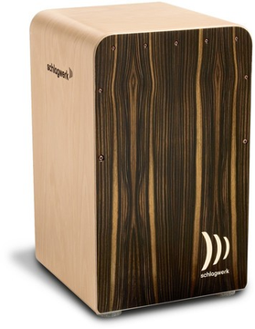 Cajon. Tampa em Ébano de Macassar, caixa de ressonância em Faia. Dimensões 50 x 30 x 30 cm. Almofada de couro SP 60 incluída.