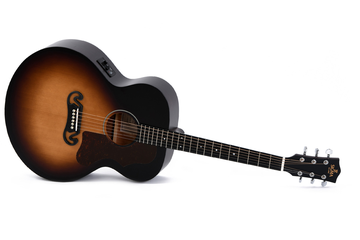 Guitarra acústica electrificada formato Grand Jumbo, tampo maciço em Abeto Sitka, lateral e fundo em Mogno, braço em Mogno Low Profile, pestana e pente em osso, escala em Micarta, escala 645mm, pestana com 42,9mm, acabamento mate ultra-fino UV, cordas Addario EXP16, pickup Sigma com afinador.