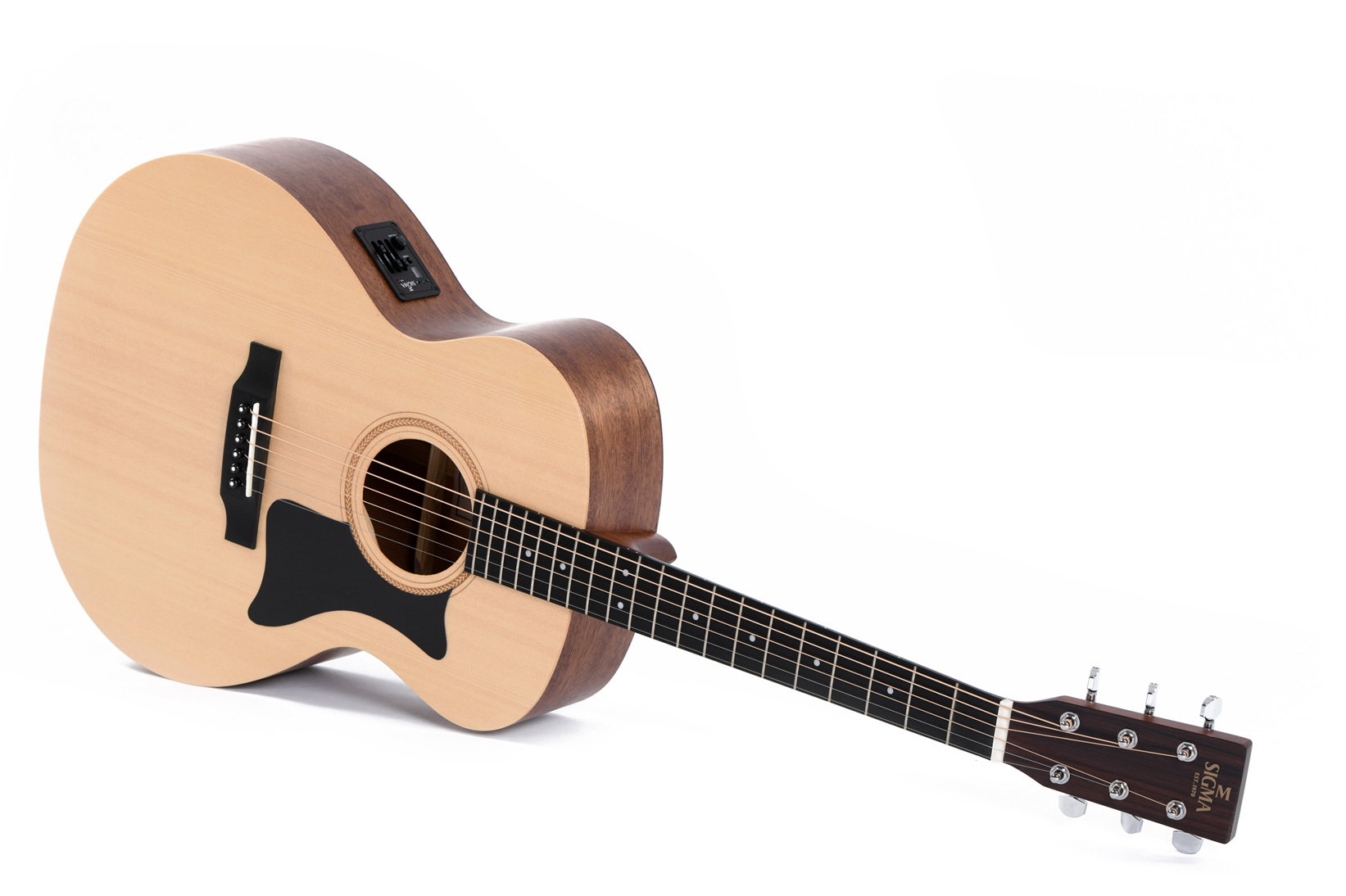Guitarra acústica electrificada formato OM, tampo maciço em Abeto Sitka, lateral e fundo em Mogno, braço em Mogno Low Profile, pestana e pente em osso, escala em Micarta, escala 645mm, pestana com 42,9mm, acabamento mate ultra-fino UV, cordas Addario EXP16, pickup Sigma com afinador.