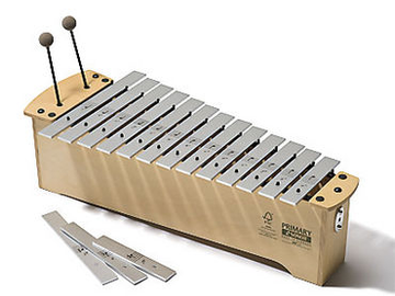 Metalofone alto diatónico com 13+3 notas, lâminas em aço de 35x5mm, estrutura em Birch, escala Dó maior, extensão C1-A2, inclui 1 par de bilros com bola em felpo SCH25.