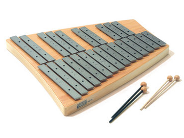 Jogo de sinos alto cromático com 25 notas, lâminas de 25x5mm, estrutura em Beech, extensão C2-C4, inclui 1 par de bilros com bola em madeira SCH95 e outro com bola em borracha SCH3.