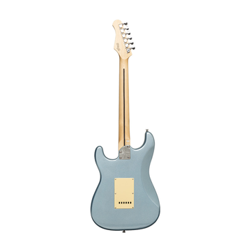 Guitarra elétrica stratocaster. Corpo em Paulownia maciço. Braço em bordo com acesso fácil aos últimos trastes. Escala em rosewood, 22 frets. Pickguard branca envelhecido. 3 Pickups Single Coil. 1 Controlo de volume e 2 controlos de tom. Seletor pickup de 5 vias. Ponte Vibrato tipo S. Pente em osso. Cordas fabricadas na Coreia. Acabamento azul (ice blue metallic).