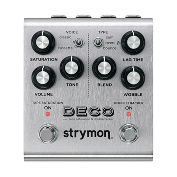 O novo Deco agora possui uma conexão USB-C para atualização de firmware e uma implementação MIDI robusta que permite sincronização de clock MIDI, armazenamento de até 300 presets e comunicação MIDI em ambas as direções, graças ao TRS Entrada MIDI; um novo circuito de entrada JFET de qualidade superior, com entradas/saídas estéreo e relativo seletor no painel traseiro, garante o máximo tom e resposta ao toque, enquanto o novo e de alto desempenho processador ARM desenvolve incrível poder de computação, absorvendo menos energia em comparação com versões anteriores. A interface do usuário foi atualizada para oferecer um ajuste mais simples, preciso e aprofundado dos parâmetros mais importantes; um controle de tom dedicado foi adicionado na seção de saturação, melhorando significativamente seu uso e tornando o produto perfeitamente equilibrado com 3 controles de rastreador duplo e 3 controles de saturação. Uma chave para selecionar o modo "Clássico" ou "Cassete" também foi adicionada na seção de saturação. Classic é o estilo Deco original, enquanto Cassette adiciona controle de nível automático (compressão variável), como encontrado em decks de cassetes de 3 cabeças de última geração. O novo Deco é muito mais versátil e performático do que antes, com opções de som que não estavam disponíveis no original.