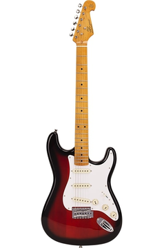 Guitarra elétrica, formato stratocaster. Corpo em basswood maciço. Braço em bordo canadiano selecionado. Truss rod de 2 sentidos. 21 Trastes. 3 Pickups single coil. Controlo de volume, controlo de tom e seletor de 3 vias. Acabamento brilhante. Inlcui saco (EB400).