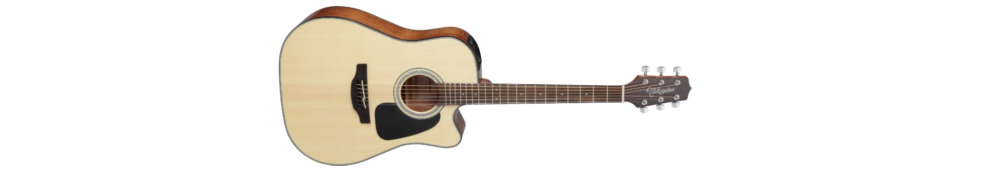 Guitarra Acústica Electrificada com formato Dreadnought, tampo em Cedro Maciço, aros e fundo em Mogno, braço em Mogno, escala em Ovangkol, ferragens cromadas, pickup Takamine TP4TD com afinador, acabamento natural brilhante.