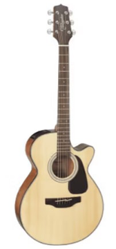 Guitarra Acústica Electrificada com formato FXC, tampo em Cedro Maciço, aros e fundo em Mogno, braço em Mogno, escala em Ovangkol, ferragens cromadas, pickup Takamine TP4TD com afinador, acabamento natural brilhante.