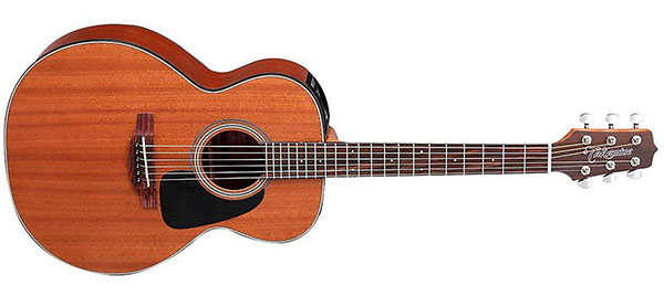 Guitarra Acústica Electrificada com formato Auditorium, corpo em Mogno, braço em Mogno, escala em Ovangkol, ferragens cromadas, pickup Takamine TP4T com afinador, acabamento natural satinado.
