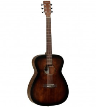 Guitarra acústica eletrificada, formato orchestra. Série Crossroads. Tampo em mogno selecionado. Lados e fundo em mogno. Ponte e escala em techwood. Cordas bronze light. EQ Tanglewood TW-EX4. Acabamento sombreado acetinado (whiskey barrel burst).