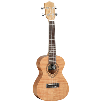 Ukulele concerto em Mogno flameado, tampo traseiro arqueado, carrilhões cromados, cordas Aquila.