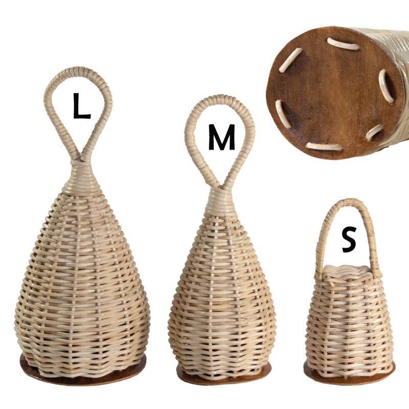Caxixi em rattan com base em calabash, tamanho l, com pérolas de vidro e plástico.