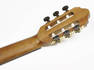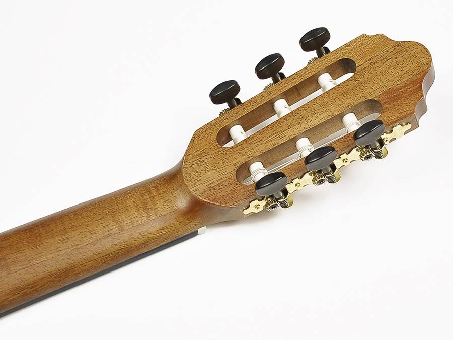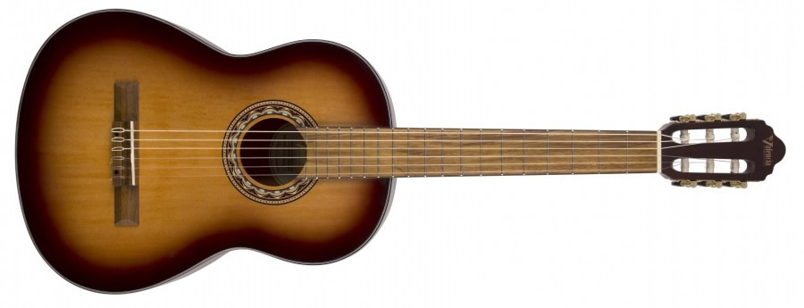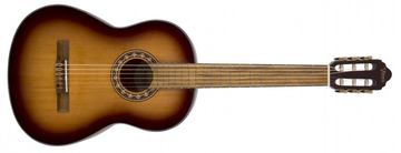 Guit. Clássica com tampo em Sitka Spruce, braço em mogno, carrilhões dourados com borboleta negra, cordas USA, acabamento Antique Sunburst
