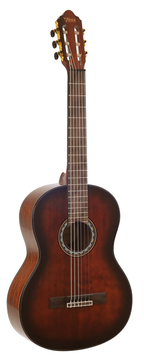 Guitarra Clássica. Tampo em abeto Sitka. Tampo traseiro arqueado. Lados e fundo em nogueira. Braço em mogno. Ponte e escala em ébano Amara. Cordas USA. Acabamento brilhante.