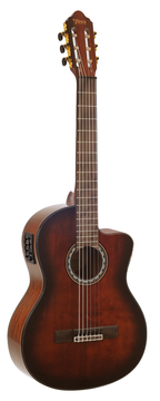 Guitarra Clássica 4/4 eletrificada. Tampo em abeto Sitka. Tampo traseiro arqueado. Lados e fundo em nogueira. Braço em mogno. Ponte e escala em ébano Amara. Preamp de 3 bandas EQ com afinador cromático. Cordas USA. Acabamento brilhante.