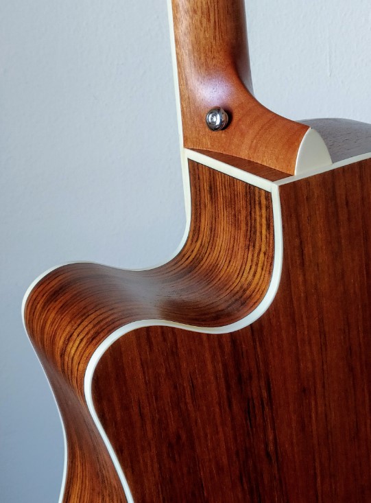 Guitarra electroacústica, tipo Dreadnought com cutaway, tampo em Abeto, fundo e laterais em Okoume, escala e ponte em Richlite, pestana e cavalete em osso, pickup "B-Band M-450T". Acabamento natural open pore. Saco incluido.