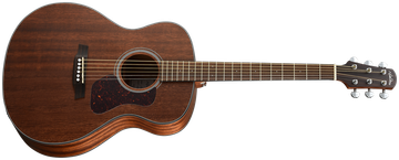 Guitarra electroacústica com tampo Mahogany sólido, fundo e ilhargas Mahogany sólido, braço Mahogany reforçado c/ fibra de vidro, escala e cavalete Rosewood, pestana GRAPH TECH NuBone, roseta/ binding em decal/Plástico ABS Preto, truss rod Two-Way, carrilhões Die-Cast cromados, pickguard Faux-tortoise shell, pickup 'WALDEN Active' EQ & tuner, acabamento UV cured PE - Open Pore Satin Finish, cordas D'ADDARIO EXP11.