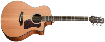 Guitarra electroacústica com tampo Cedar sólido, fundo e ilhargas Mahogany laminado, braço Mahogany reforçado c/ fibra de vidro, escala e cavalete Rosewood, pestana GRAPH TECH NuBone, roseta/ binding em decal/Plástico ABS Preto, truss rod Two-Way, carrilhões Die-Cast cromados, pickguard Faux-tortoise shell, pickup 'WALDEN Active' EQ & tuner, acabamento UV cured PE - Open Pore Satin Finish, cordas D'ADDARIO EXP11.