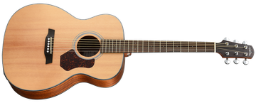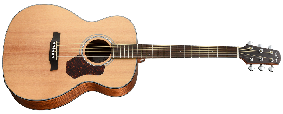 Guitarra electroacústica com tampo Sitka Spruce sólido, fundo e ilhargas Mahogany laminado, braço Mahogany reforçado c/ fibra de vidro, escala e cavalete Rosewood, pestana GRAPH TECH NuBone, roseta/ binding em decal/Plástico ABS Preto, truss rod Two-Way, carrilhões Die-Cast cromados, pickguard Faux-tortoise shell, pickup 'WALDEN Active' EQ & tuner, acabamento UV cured PE - Open Pore Satin Finish, cordas D'ADDARIO EXP11