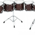 Timbalões de concerto com 16 x 12 e 8 tensores, casco em carvalho com 6 folhas, aros Dynahoop, acabamento escuro, sistema de montagem YESSII e peles Remo Ambassador Coated em cima e Ambassados Clear em baixo.