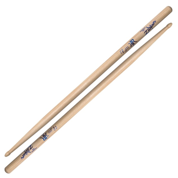 Baquetas Artist Series com assinatura Kaz Rodriguez, ponta em madeira, madeira de Hickory, comprimento 16 3/4”, diâmetro 0.580”, ponta em acorn, acabamento natural.